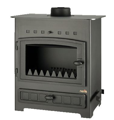 This stove is a steel made stove and is fitted with a wrap around water heat exchanger with a built in thermostat to give 6.5KW to water and 4.5KW to room heat.
